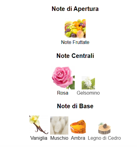 Cuore: Gelsomino, Rosa, Legno di Cedro.